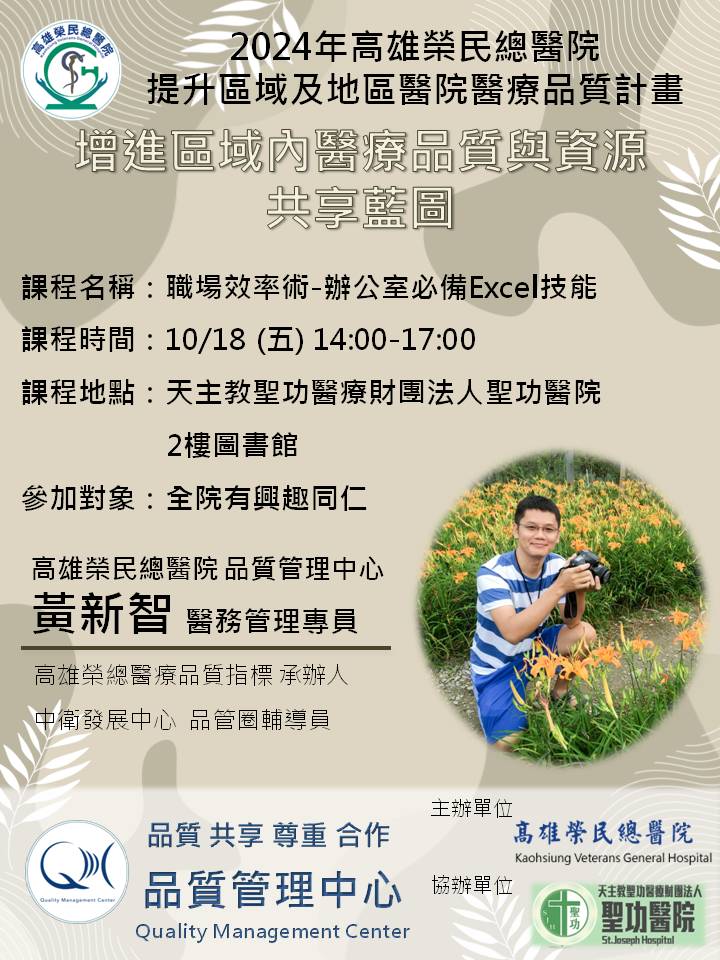 【2024提升區域及地區醫院醫療品質計畫】-職場必備EXCEL基礎操作-天主教聖功醫院